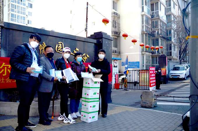 最后,大家来到昌平区国瑞颐墅社区,该区物业王总代表接受了口罩捐赠。